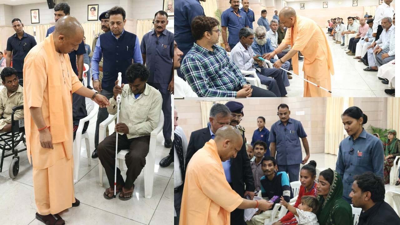 जनता दरबार में चंदौली से आए दो युवकों को मुख्यमंत्री ने इलेक्ट्रॉनिक चार्जिंग वॉकिंग स्टिक भी दी। आदित्यनाथ ने अधिकारियों को निर्देश दिया कि वे सुबह 10 बजे से कार्यालय में बैठें और जनशिकायतें सुनें। उन्होंने कहा कि स्थानीय शिकायतों का समाधान जनपद स्तर पर ही कराया जाए और जो समस्याएं शासन स्तर की हों, उन्हें ही यहां भेजा जाए।