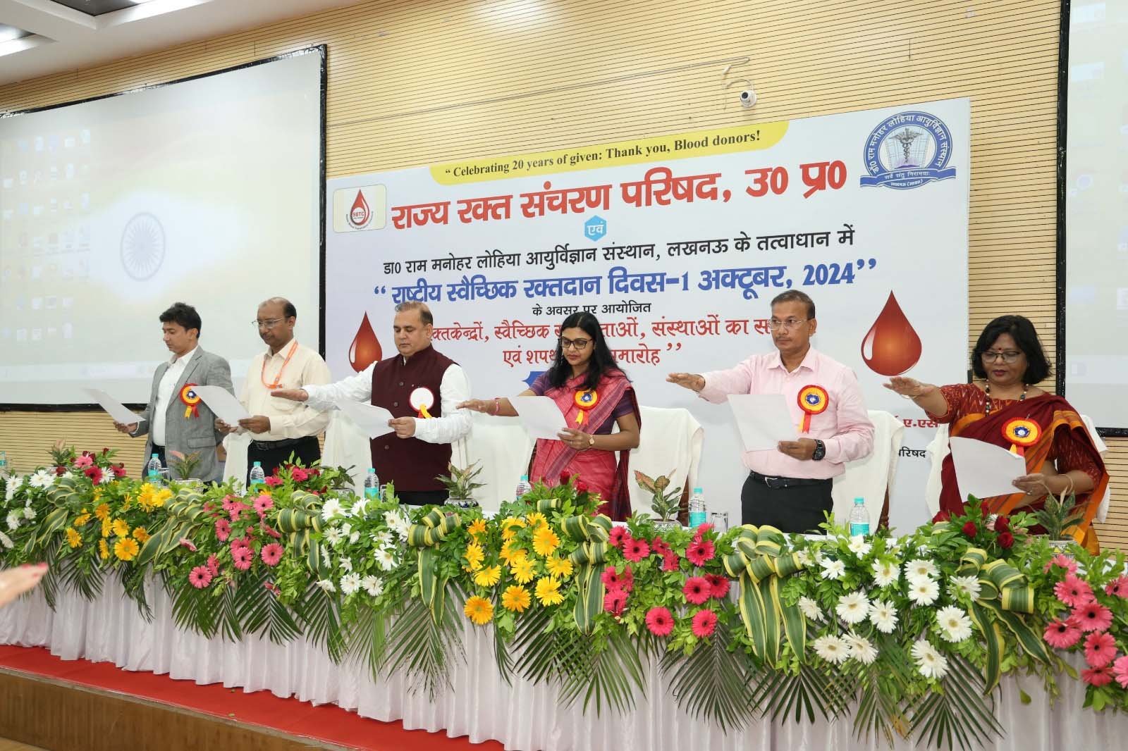 इसके बाद डॉ राम मनोहर लोहिया आयुर्विज्ञान संस्थान के सभागार में *रक्तदान सम्मान समारोह आयोजित किया गया। इस अवसर पर संस्थान के निदेशक डॉ सीएम सिंह ने कार्यक्रम में मौजूद सभी लोगों का स्वागत किया | साथ ही सभी से स्वैच्छिक रक्तदान के लिए आगे आने का आह्वान किया | इस समारोह में उन रक्तदाताओं और संस्थाओं को सम्मानित किया गया जिन्होंने रक्तदान के क्षेत्र में उत्कृष्ट योगदान दिया ।