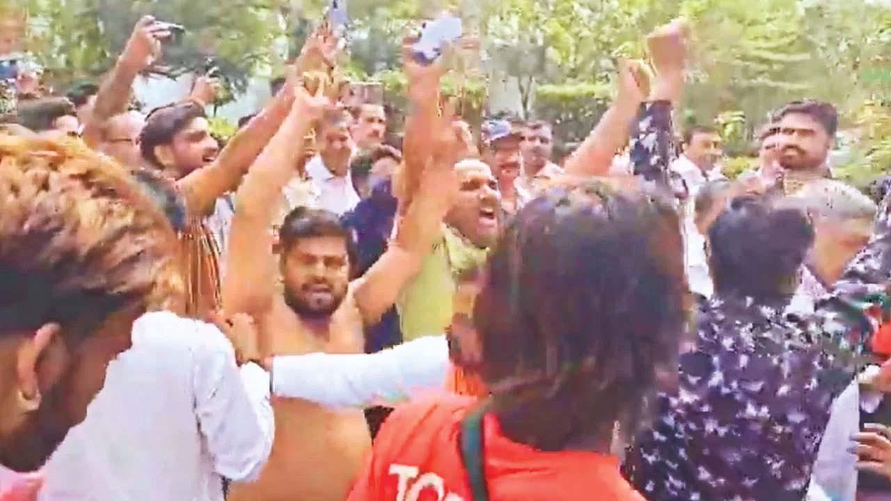 बुधवार सुबह जब बीजेपी विधायक नंदकिशोर के समर्थकों को गाजियाबाद पुलिस कमिश्नर के ट्रांसफर की सूचना मिली तो वह विधायक के घर इकट्ठा हो गए। इस बीच उन्होंने जमकर ढोल बजाए और डांस किया। इसका एक वीडियो भी सोशल मीडिया पर वायरल हुआ है, जिसमें समर्थको खुशी में झूमते दिख रहे हैं। एक समर्थक तो अर्धनग्न होकर नाचता दिख रहा है। वीडियो में विधायक नंदकिशोर भी दिख रहे हैं। वह लोगों को माला पहनाते नजर आ रहे हैं।
