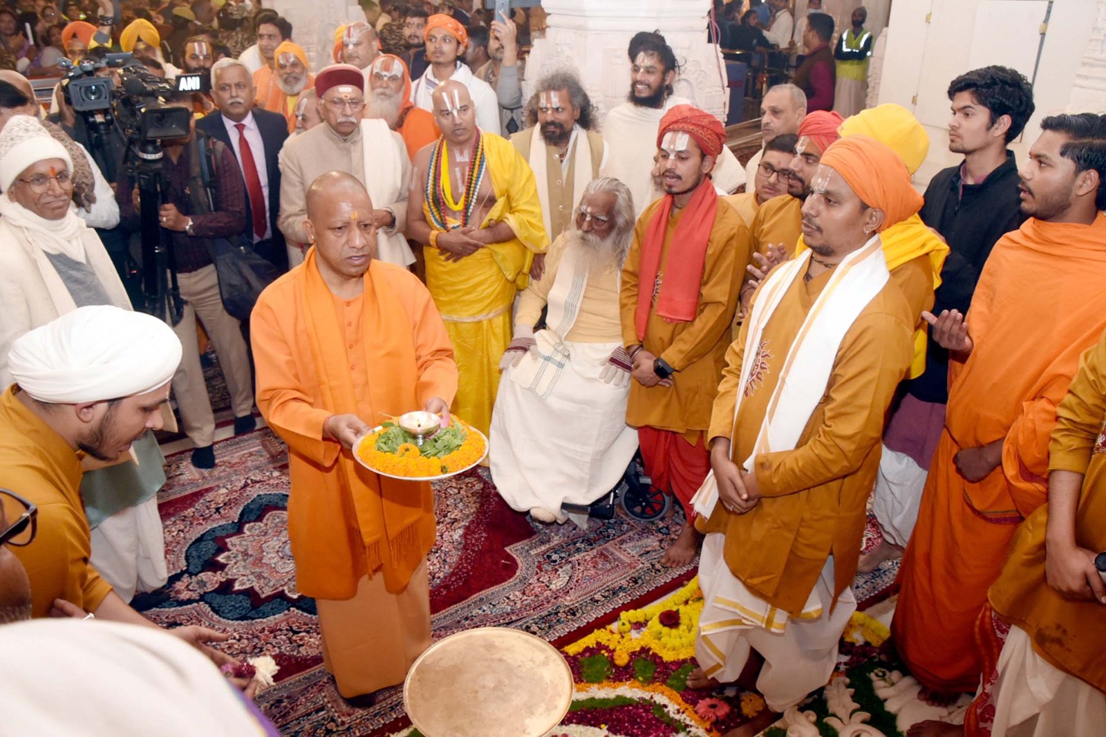 अयोध्या। मुख्यमंत्री योगी आदित्यनाथ श्रीरामलला के विग्रह की प्राण-प्रतिष्ठा की पहली वर्षगांठ पर शनिवार को अयोध्या पहुंचे। मुख्यमंत्री ने प्रभु श्री राम के चरणों में शीश झुकाया व रामलला की उतारी आरती।