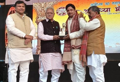 अयोध्या। अयोध्या महोत्सव न्यास द्वारा आयोजित गरिमामय समारोह में आज अवधी भाषा एवं संस्कृति के सशक्त हस्ताक्षर पंडित दिवाकर द्विवेदी को “अयोध्या रत्न” सम्मान से सम्मानित किया गया। यह प्रतिष्ठित सम्मान भारतीय जनता पार्टी के राष्ट्रीय उपाध्यक्ष एवं राज्यसभा सांसद लक्ष्मीकांत वाजपेई के कर-कमलों द्वारा प्रदान किया गया।
