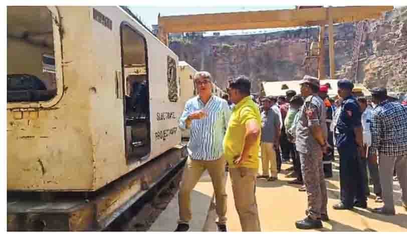 नगरकुरनूल। तेलंगाना के श्रीशैलम लेफ्ट बैंक नहर (एसएलबीसी) के एक हिस्से के ढहने से उसमें फंसे लोगों को ढूंढने की कोशिशें जारी है। बचाव अभियान में तेजी आई है और रविवार को कुछ और टीमें और उपकरण भी सुरंग के अंदर भेजे गए हैं। सुरंग से मिट्टी हटाने के लिए एक हाइड्रोलिक संचालित रोबोट्स का इस्तेमाल किया जा रहा है। बता दें कि सुरंग में फंसे आठ लोगों में से एक का शव बरामद हो चुका है। बाकी बचे सात लोगों की तलाश जारी है।