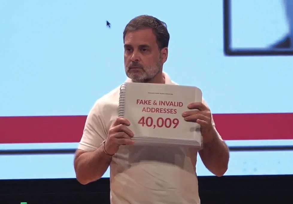 राहुल गांधी ने फेक एड्रेस का प्रूफ दिखाया, जिसमें वोटर्स के आगे पते में लिखा था हाउस एड्रेस 0, ऐसे हजारों लोगों थे और पिता का नाम hhgassjk मिला। एक ही घर से हाउस नंबर 35 से 80 वोटर्स ने वोट किया। हाउस नंबर 791 से 46 वोटर्स ने वोट किया। राहुल गांधी ने कहा, पिछले कुछ समय से जनता में एक संदेह था। सत्ता विरोधी माहौल दल के खिलाफ होता है, लेकिन बीजेपी इकलौती ऐसी पार्टी है जिसके खिलाफ यह माहौल नहीं होता।