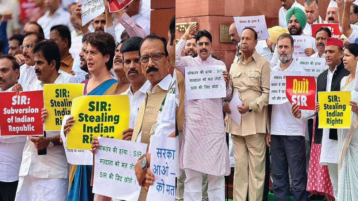 विपक्षी सांसदों ने ‘नहीं चलेगा-नहीं चलेगा, एसआईआर नहीं चलेगा’ और ‘वोटबंदी बंद करो’ के नारे लगाए। कई सांसदों ने अपने हाथों में तख्तियां ले रखी थीं, जिन पर एसआईआर के विरोध में नारे लिखे हुए थे। कांग्रेस सांसद सैयद नासिर हुसैन ने कहा, ‘‘हम इस मुद्दे को जोरशोर से उठाएंगे। ऐसा नहीं हो सकता कि रातों-रात लाखों लोगों को मतदाता सूची से बाहर कर दिया जाए।’’ उन्होंने कहा कि सरकार और निर्वाचन आयोग को इस मामले में अपने कदम पीछे खींचने होंगे। विरोध प्रदर्शन से पहले ‘इंडिया’ गठबंधन के घटक दलों के सदनों के नेताओं ने बैठक कर मानसून सत्र में आगे की रणनीति पर चर्चा की और एसआईआर के मुद्दे को पुरजोर तरीके से उठाने का फैसला किया।