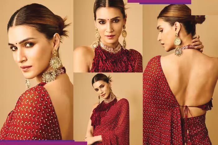 सुर्ख लाल साड़ी और बैकलैस ब्लाउज, कृति सेनन का बोल्ड लुक काट रहा गदर, ब्लाउज की डोरी पर अटकी फैंस की निगाह