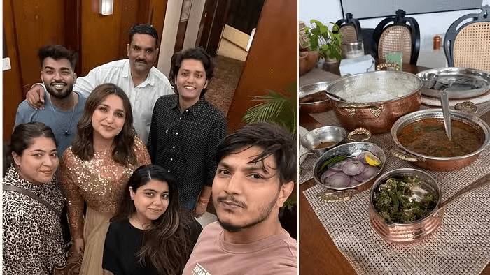 परिणीति चोपड़ा ने अपने आगामी प्रोजेक्ट के सेट से कुछ बिहाइंड द सीन शेयर करने के लिए इंस्टाग्राम का सहारा लिया। पहली तस्वीर में परिणीति नीली शर्ट और जींस में नज़र आ रही हैं और उनके हाथ में एक छोटा पंखा है। अभिनेत्री ने अपना चेहरा सफेद कपड़े से ढका हुआ है। दूसरी तस्वीर में परिणीति अपनी टीम के साथ पोज देते हुए एक मिलियन-डॉलर की मुस्कान बिखेरती नजर आ रही हैं। उन्होंने मैरून स्वेटर पहना हुआ है जिस पर सफेद दिल बने हुए हैं। तीसरी तस्वीर में परिणीति किसी कैंप में रजाई में लिपटी नजर आ रही हैं। चौथी तस्वीर में टेबल पर रखे खाने की झलक है। पांचवीं तस्वीर में परिणीति अपने पति राघव चड्ढा से वीडियो कॉल पर बात करती हुई नजर आ रही हैं। इसके अलावा परिणीति ने कई वीडियोज भी शेयर किए हैं।