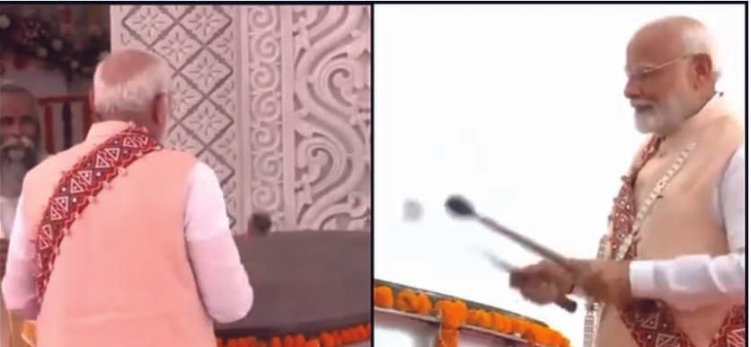 मुंबई। प्रधानमंत्री नरेंद्र मोदी महाराष्ट्र के एक दिवसीय दौरे पर हैं। आज सुबह पीएम मोदी नांदेड़ एयरपोर्ट पर पहुंचे, जहां भाजपा नेता अशोक चह्वाण ने उनका स्वागत किया। यहां से उन्होंने हेलीकॉप्टर से पोहरादेवी के लिए उड़ान भरी। वाशिम जिले के पोहरादेवी में जगदंबा माता मंदिर में पीएम मोदी ने पूजा अर्चना की और पारंपरिक ढोल पर हाथ भी आजमाया।