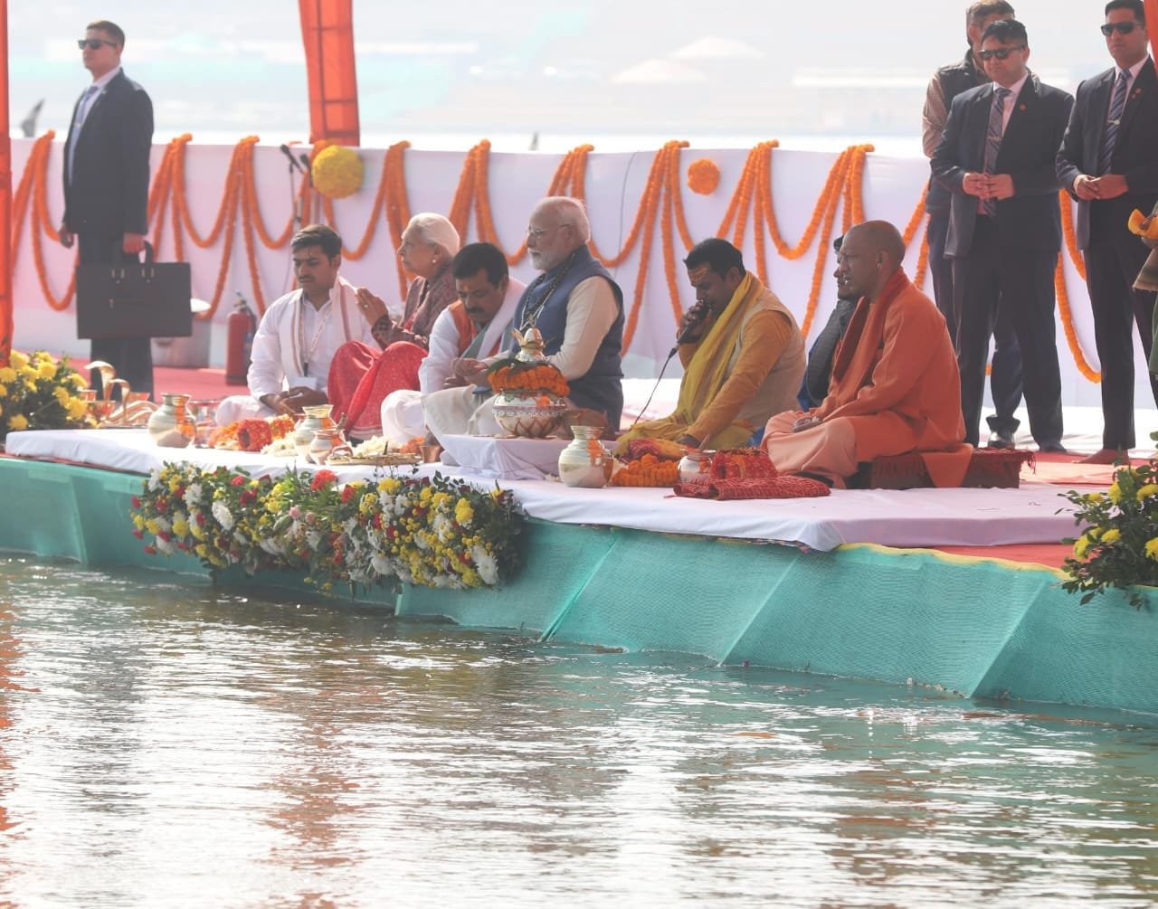 त्रिवेणी संगम में अक्षत, चंदन, रोली, पुष्प और वस्त्र अर्पित कर पीएम मोदी ने की महाकुम्भ के सफल आयोजन की कामना