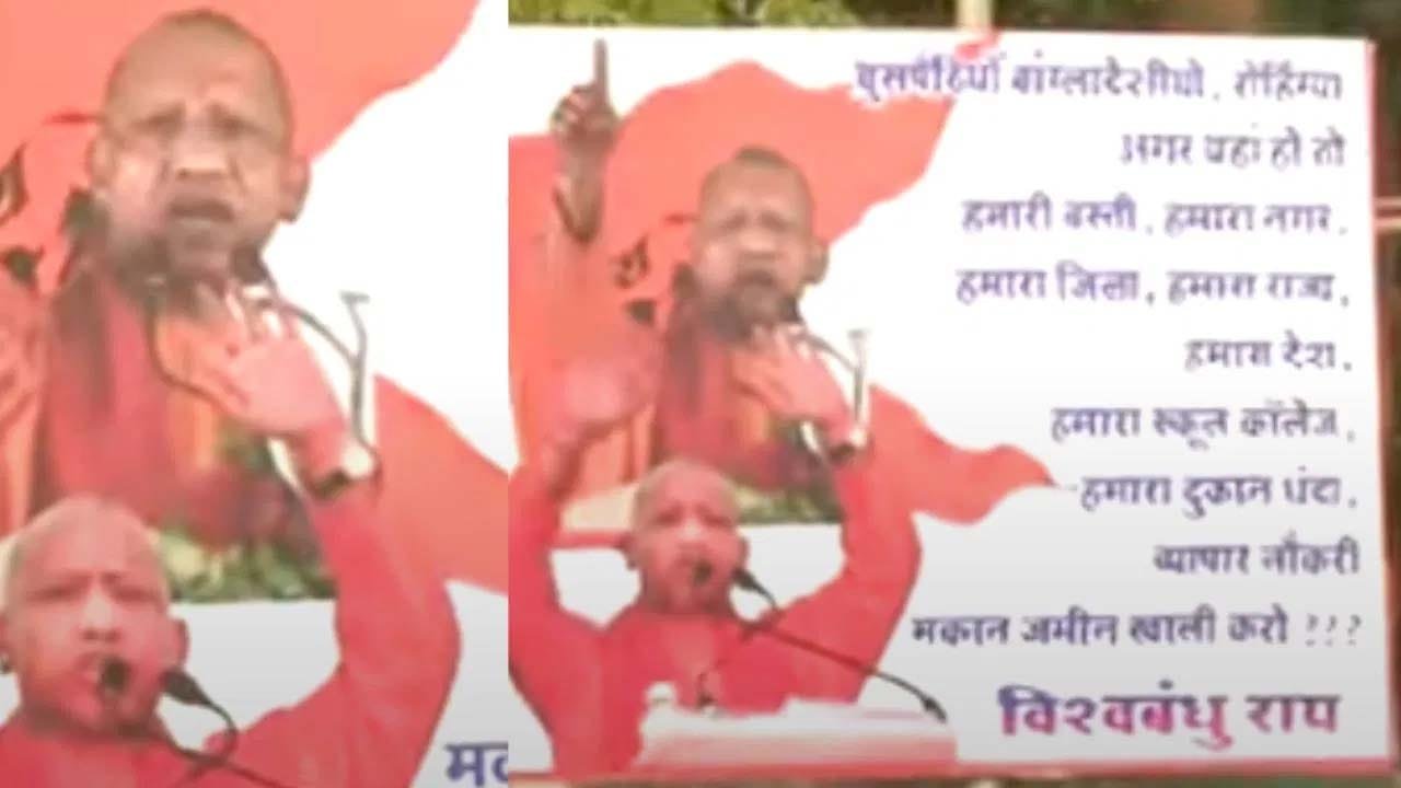 मुंबई। मुंबई के अंधेरी और जोगेश्वरी इलाके में मुख्यमंत्री योगी आदित्यनाथ की तस्वीर के साथ अवैध बांग्लादेशी और रोहिंग्या के खिलाफ चेतावनी भरे पोस्टर लगे हुए दिखाई दिए। पोस्टर में बड़े-बड़े अक्षरों में लिखा है घुसपैठियों बांग्लादेशियों , रोहिंग्या अगर यहां हो तो हमारी बस्ती , हमारा नगर हमारा जिला, हमारा राज्य, हमारा देश, हमारा स्कूल-कॉलेज, हमारा दुकान धंधा, व्यापार नौकरी, मकान जमीन खाली करो।
