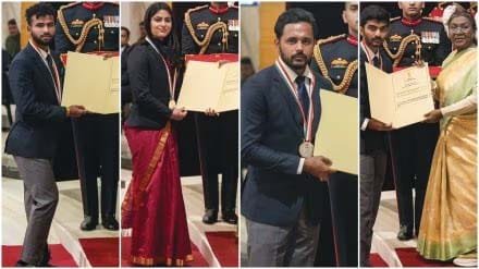 नई दिल्ली, एजेंसी। विश्व शतरंज चैंपियन गुकेश डी और पेरिस ओलंपिक और पैरालंपिक पदक विजेता – मनु भाकर (निशानेबाजी), हरमनप्रीत सिंह (हॉकी) और प्रवीण कुमार (पैरा-एथलीट) को शुक्रवार को राष्ट्रपति भवन में विशेष रूप से आयोजित समारोह में राष्ट्रपति द्रौपदी मुर्मू से प्रतिष्ठित मेजर ध्यानचंद खेल रत्न पुरस्कार मिला।