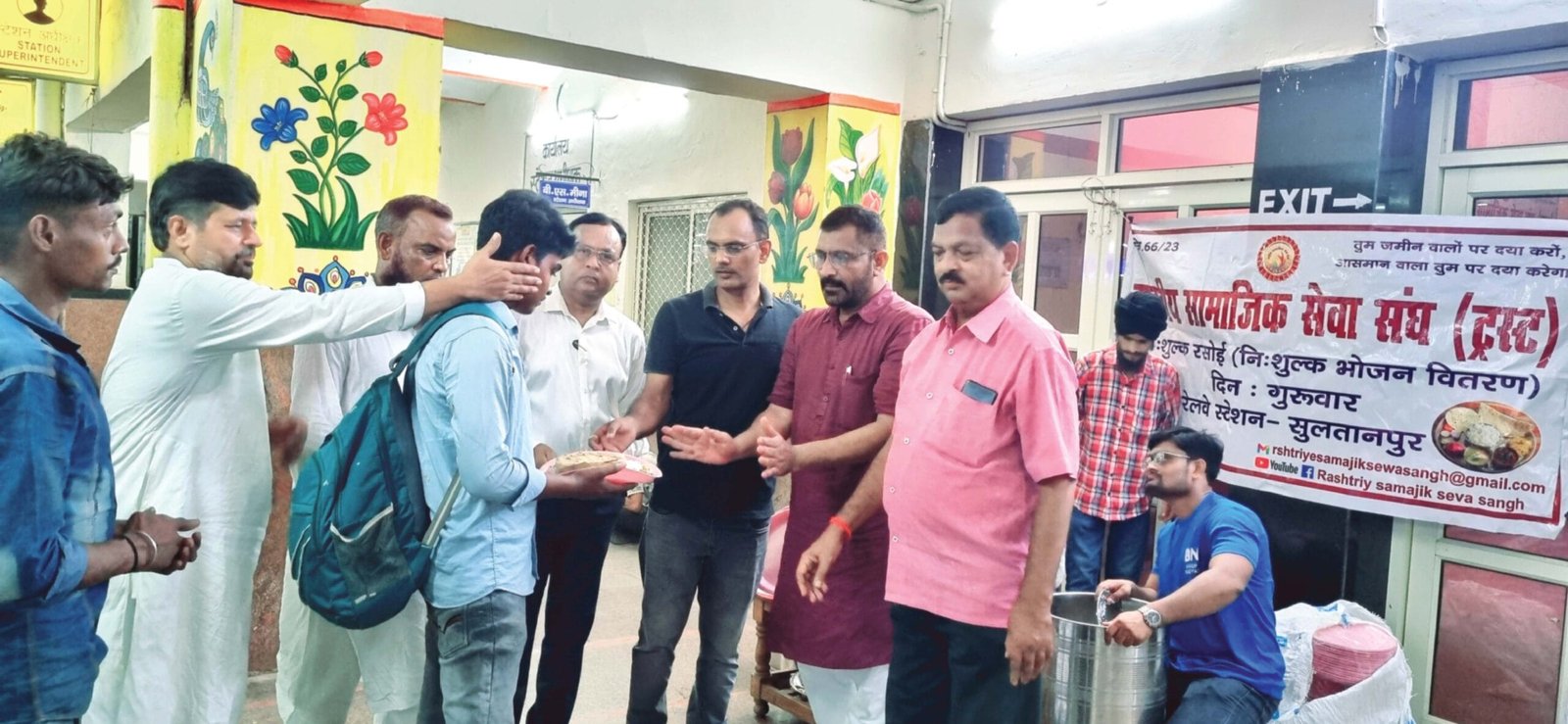 सुलतानपुर। राष्ट्रीय सामाजिक सेवा संघ के सदस्यो द्वारा परोपकार का सिलिसिला अनवरत जारी है। बृहस्पतिवार की शाम मेडिकल कॉलेज व रेलवे स्टेशन पर जरूरतमंदो को निशुल्क भोजन वितरित किया। राष्ट्रीय सामाजिक सेवा संघ के अध्यक्ष मेराज अहमद खान के संयोजन में गुरुवार की राष्ट्रीय सामाजिक सेवा संघ की निःशुल्क रसोई ने स्वशासी राज्य चिकित्सा महाविद्यालय/जिला चिकित्सालय और रेलवे स्टेशन पर सैकड़ो मरीजों, तीमारदारों यात्रियों तथा जरूरतमंदो को गरम ताजा भोजन की थाली बांटी।