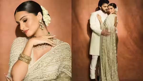 तस्वीरों की पूरी शृंखला बेहद आकर्षक है। पहली चार में तो छोटी बिंदी और साड़ी पहने अभिनेत्री दिख रही हैं, लेकिन पांचवीं में उनके साथ खास दोस्त वीर पहाड़िया नजर आ रहे हैं। वो भी ट्रेडिशनल वियर में हैं।