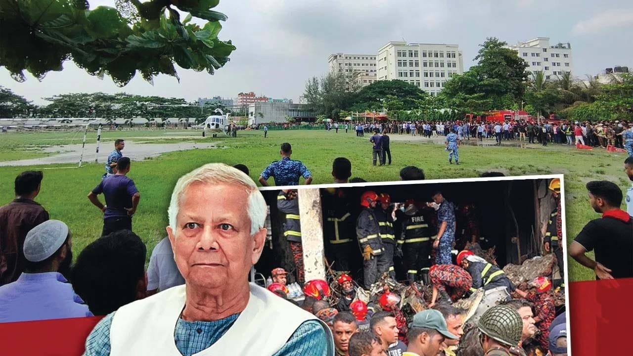 यूनुस ने कहा कि पूरा देश स्तब्ध और अवाक है। हम जो महसूस कर रहे हैं, उसे बयां करने के लिए दुःख शब्द भी कम लगता है। इस त्रासदी का सदमा अभी कम नहीं हुआ है। शव अभी भी अस्पतालों में पहुंच रहे हैं। बच्चे अभी भी अस्पतालों में मर रहे हैं।” उन्होंने आगे कहा “माता-पिता अभी भी बेसब्री से खोज रहे हैं, पूछ रहे हैं कि उनके बेटे या बेटियां कहां हैं। कुछ तो शायद उन्हें फिर कभी पहचान ही न पाएं।”