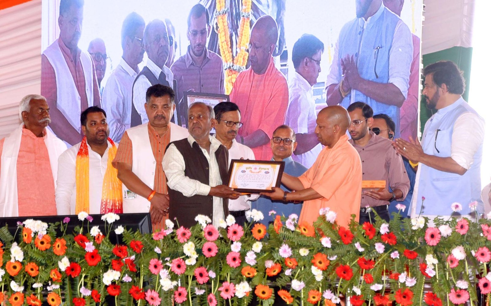 कार्यक्रम के दौरान सीएम योगी ने मंच पर विभिन्न कल्याणकारी योजनाओं के लाभार्थियों को उपकरण व प्रमाण पत्र प्रदान कर उन्हें सम्मानित किया। उन्होंने दिव्यांगजन को यंत्र, उपकरण, युवाओं को टैबलेट, पात्रों को आयुष्मान कार्ड, युवाओं को सीएम युवा योजना के तहत ऋण तथा एनआरएलएम व कृषि के लाभार्थियों को प्रमाण पत्र का वितरण किया।