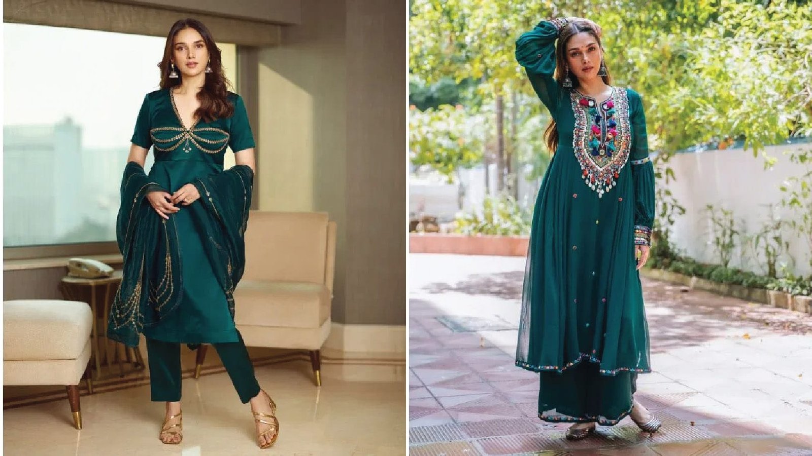 सिंपल आउटफिट पहनना पसंद हैं तो ईद के लिए अदिति राव हैदरी का ये सूट लुक भी अच्छा लगेगा। एक्ट्रेस ने सिंपल कुर्ती पहनी है, जिसके साथ मैचिंग ट्राउजर वियर किया है। सूट में लाइट एंब्रॉयडरी वर्क किया गया है। अदिति राव हैदरी ने लुक को कंप्लीट करने के लिए गोल्डन सैंडल पहनी हैं और पोल्की झुमके वियर किए हैं।