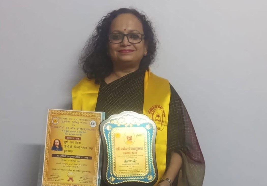 विशेष रूप से श्रीमती स्वाधा सिन्हा, जो लखनऊ की निवासी एवं वर्तमान में दिल्ली पब्लिक स्कूल, बुलंदशहर के अंग्रेज़ी विभाग में कार्यरत हैं, को विद्यार्थियों के सर्वांगीण विकास एवं उज्ज्वल भविष्य निर्माण में उनके उल्लेखनीय योगदान के लिए “डॉ.सर्वपल्ली राधाकृष्णन सम्मान – 2025” से सम्मानित किया गया। इस उपलब्धि पर डीपीएस बुलंदशहर की प्रधानाचार्य एवं समस्त स्टाफ सदस्यों ने उन्हें हार्दिक बधाई एवं शुभकामनाएँ दीं। कार्यक्रम का सफल संचालन मयंक वर्मा ने किया तथा संयोजिका डॉ. सुरक्षा बंसल ने धन्यवाद ज्ञापन प्रस्तुत किया।
